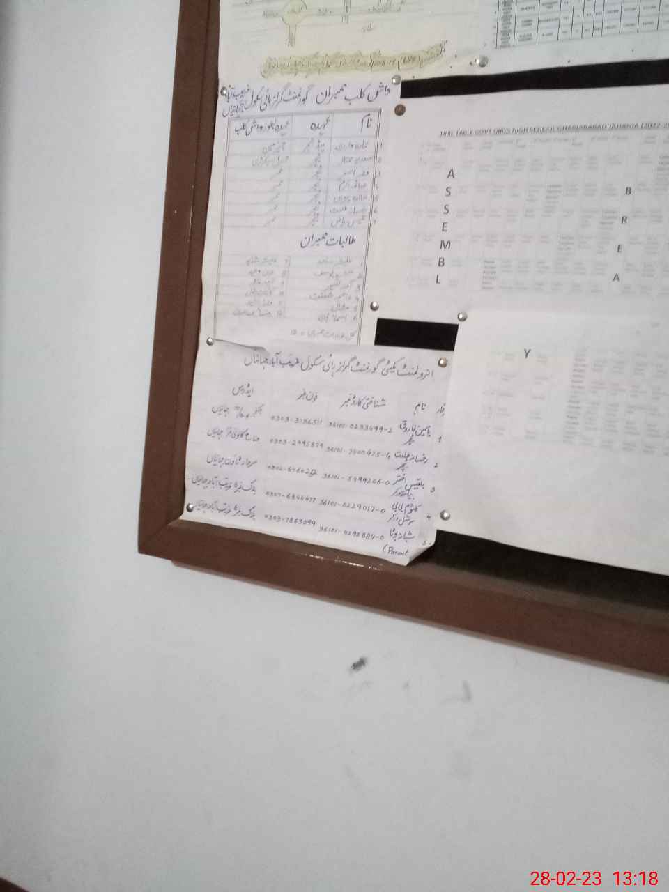 | EMIS Code: 36440126 | Name of School: GGHS GHARIB ABAD, JAHANIAN | |||