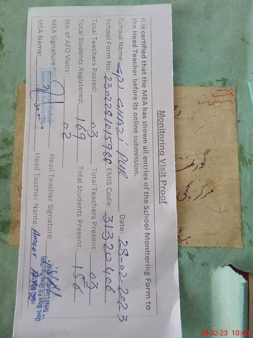 | EMIS Code: 31320406 | Name of School: GPS GHAZI PUR | |||