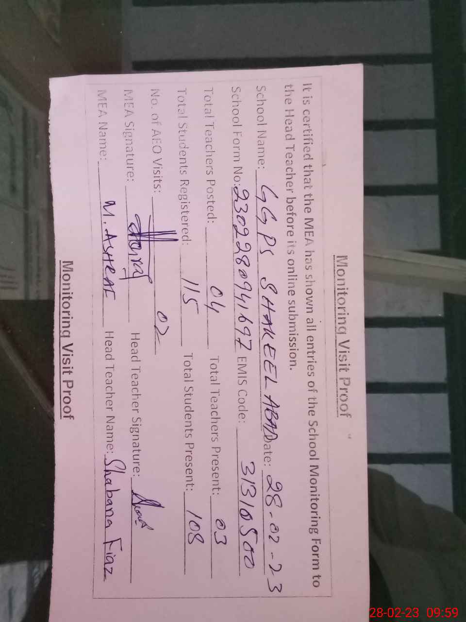 | EMIS Code: 31310500 | Name of School: GGPS SAAHAKEEL ABAD | |||