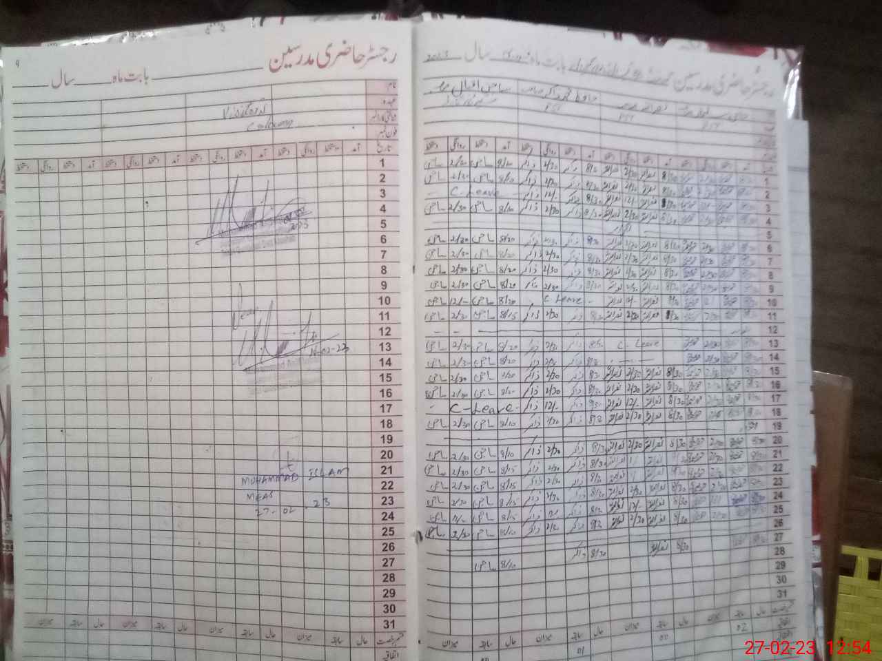 | CNIC | Full Name | Designation | R/C | Absence During Last Calender Month |