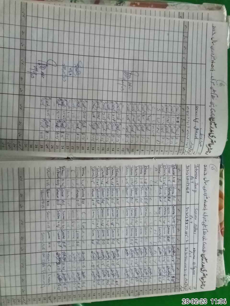 | CNIC | Full Name | Designation | R/C | Absence During Last Calender Month |