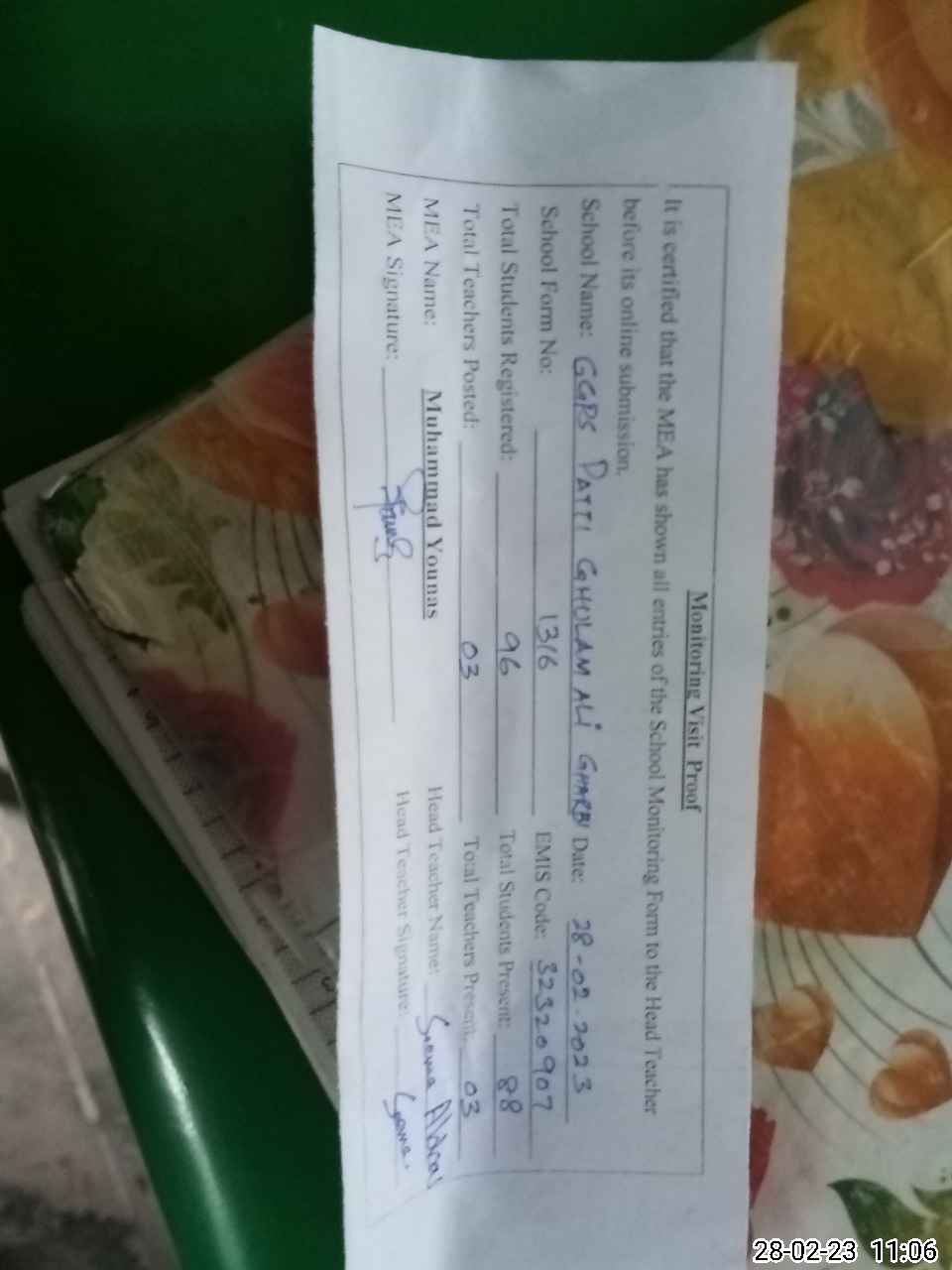 | EMIS Code: 32320907 | Name of School: GGPS PATTI GHULAM ALI GHARBI | |||