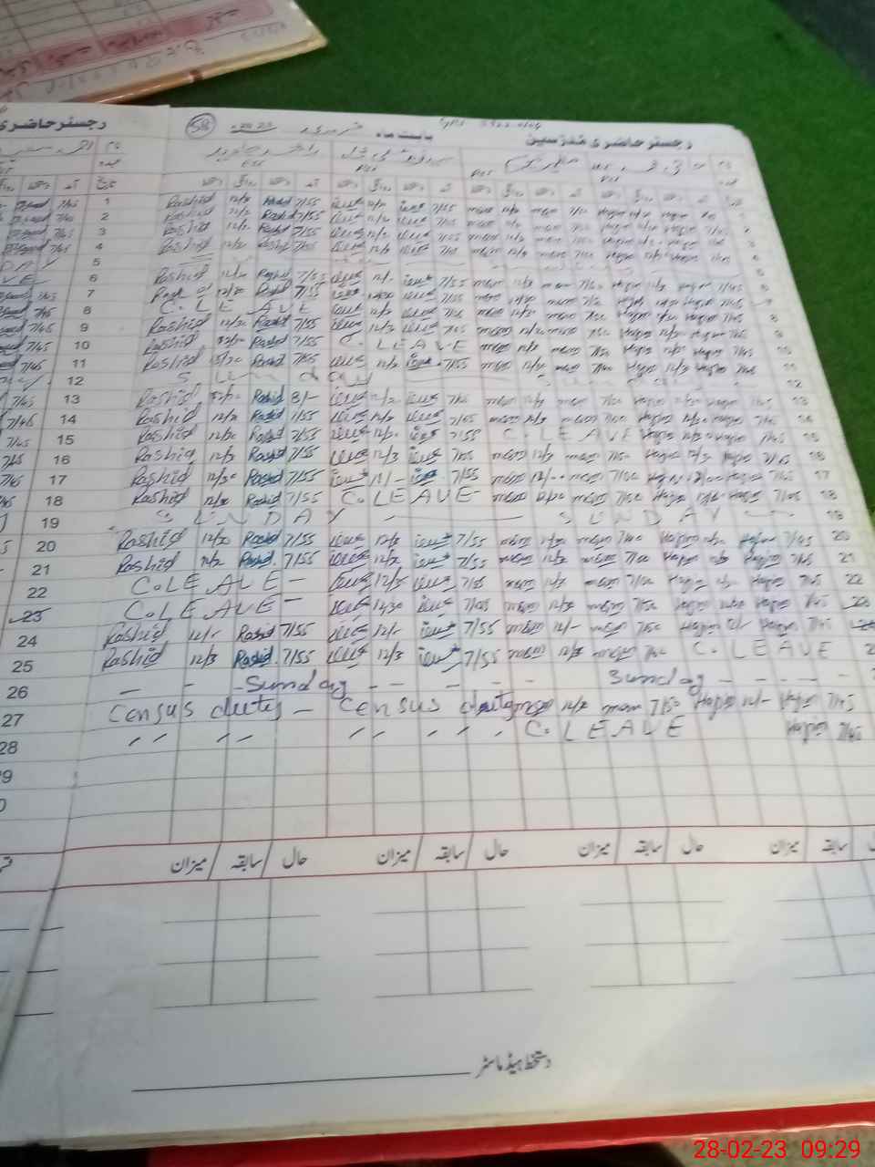 | CNIC | Full Name | Designation | R/C | Absence During Last Calender Month |