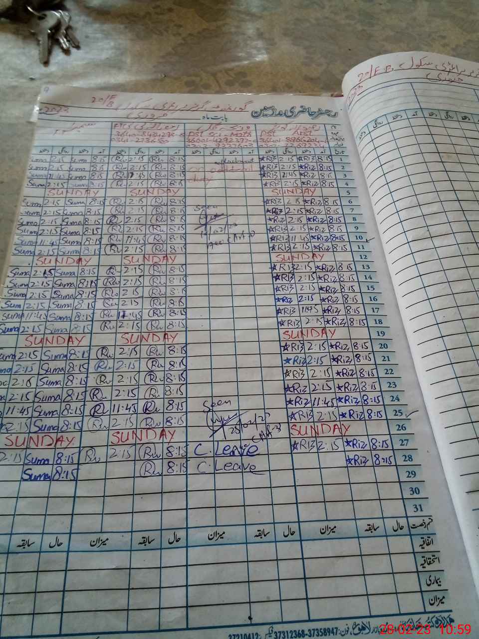 | CNIC | Full Name | Designation | R/C | Absence During Last Calender Month |