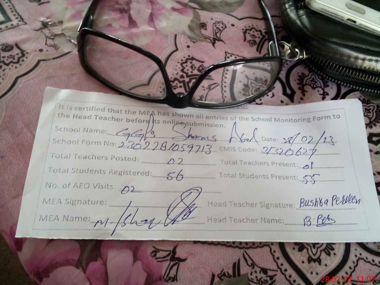 | Attendance Register | Head Teacher | MEA with School | Visit Proof |