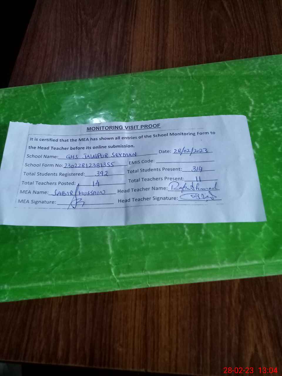 | EMIS Code: 38210811 | Name of School: GHS JALAL PUR SAYEDAN | |||