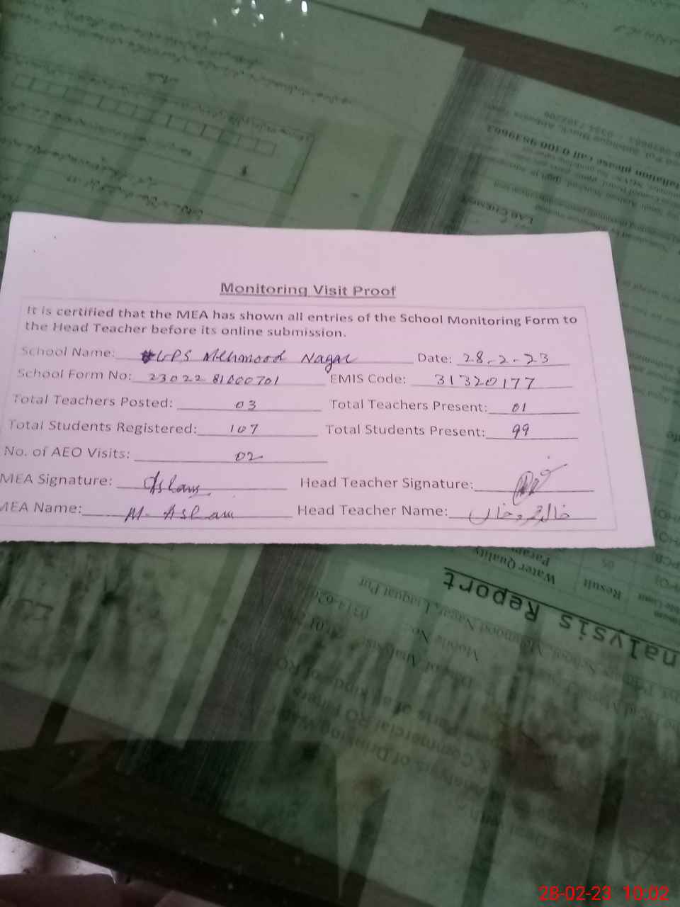 | EMIS Code: 31320177 | Name of School: GPS MEHMOOD NAGAR | |||