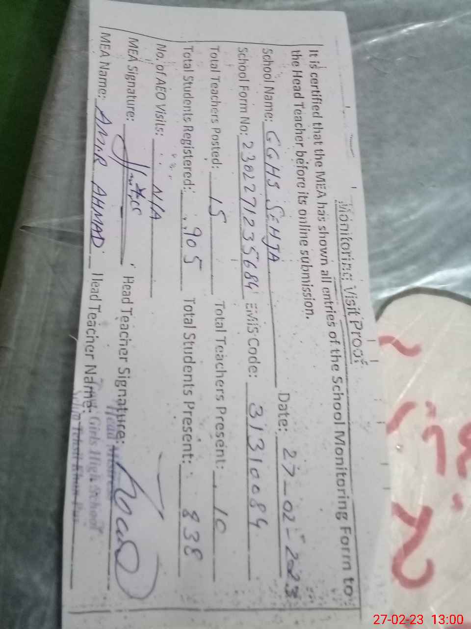 | EMIS Code: 31310084 | Name of School: GGHS SEHJA | |||