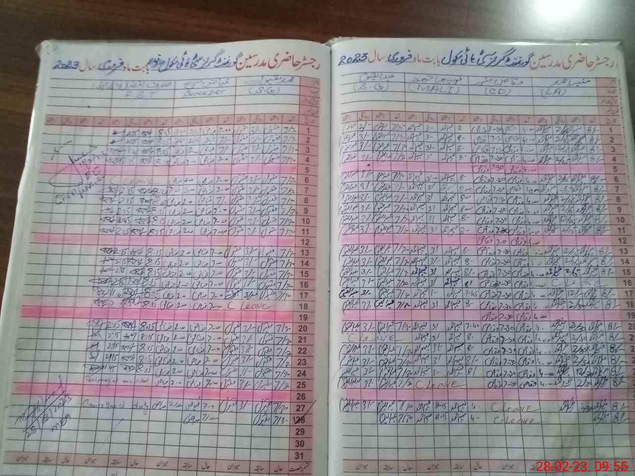 | CNIC | Full Name | Designation | R/C | Absence During Last Calender Month |