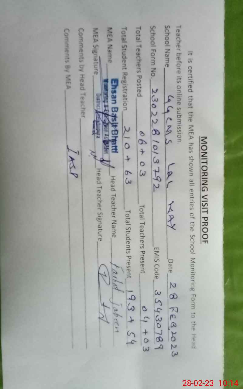 | EMIS Code: 35430789 | Name of School: GGCMES LAL KAY | |||