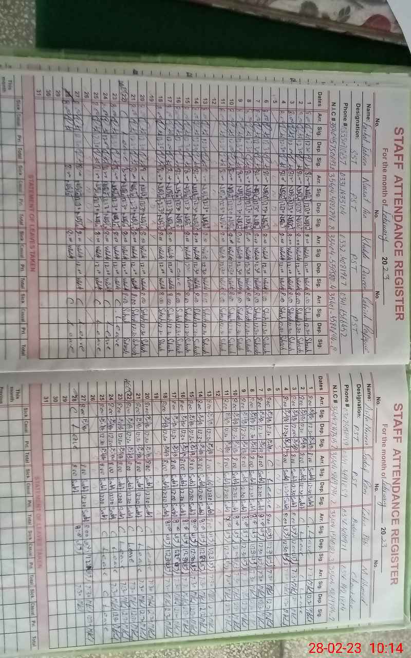 | CNIC | Full Name | Designation | R/C | Absence During Last Calender Month |