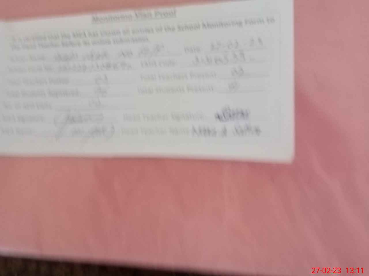 | Attendance Register | Head Teacher | MEA with School | Visit Proof |