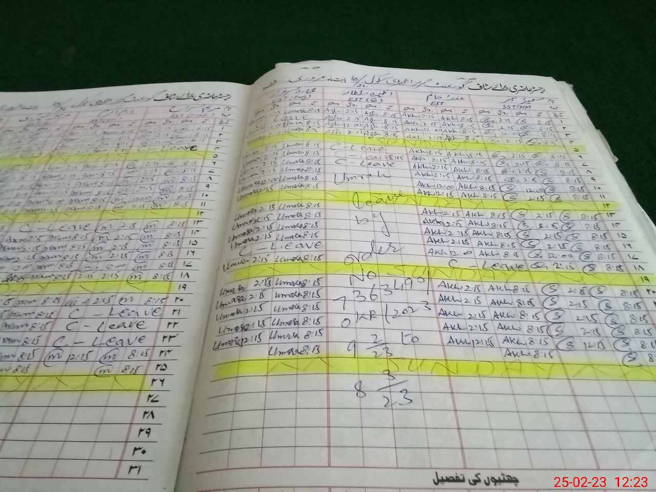 | Leave | Duty | Absent | Maternity | Medical | Ex- Pak |