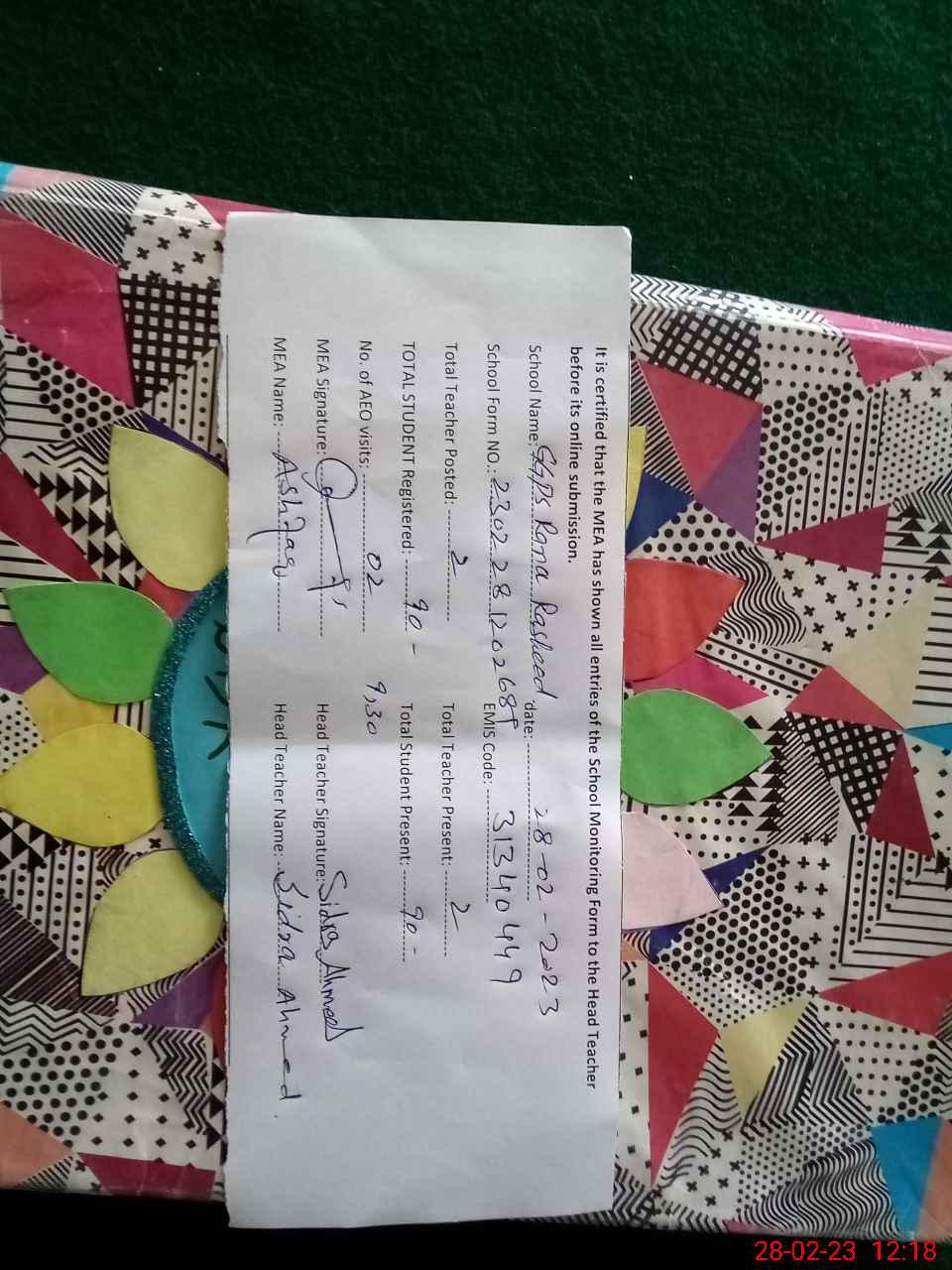| EMIS Code: 31340449 | Name of School: GGPS BASTI RANA RASHID | |||