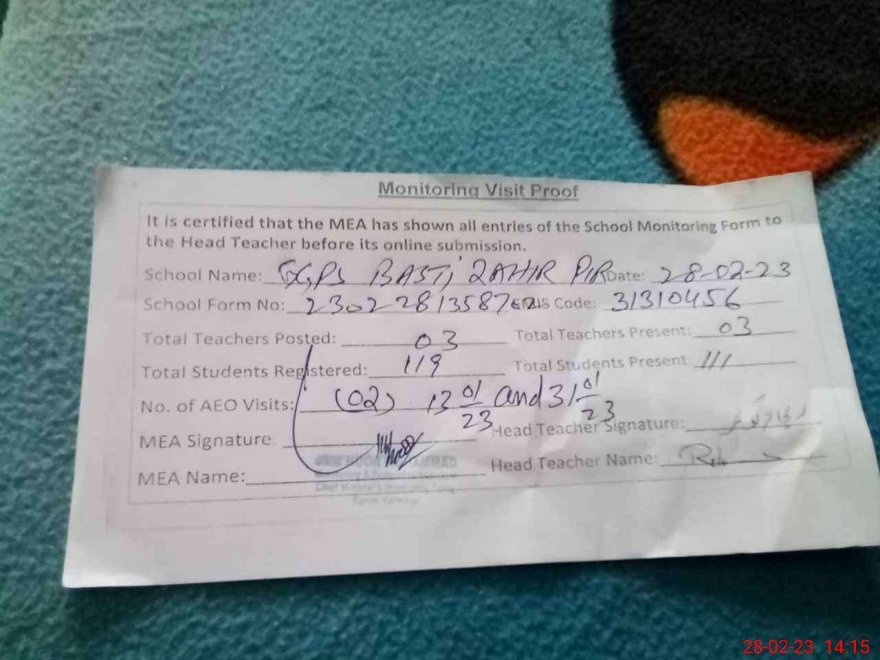 | EMIS Code: 31310456 | Name of School: GGPS BASTI ZAHIR PIR | |||