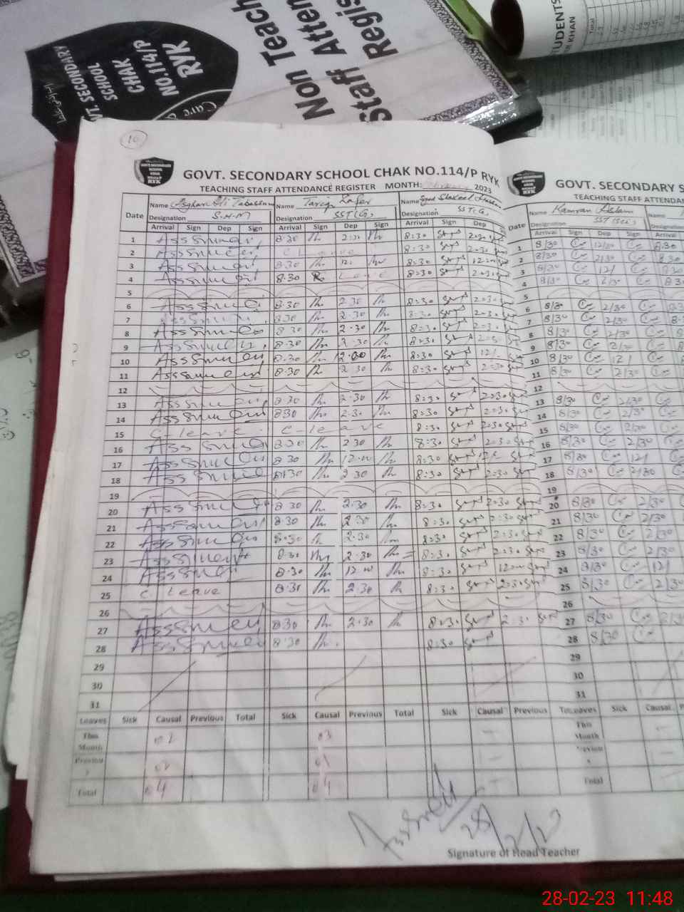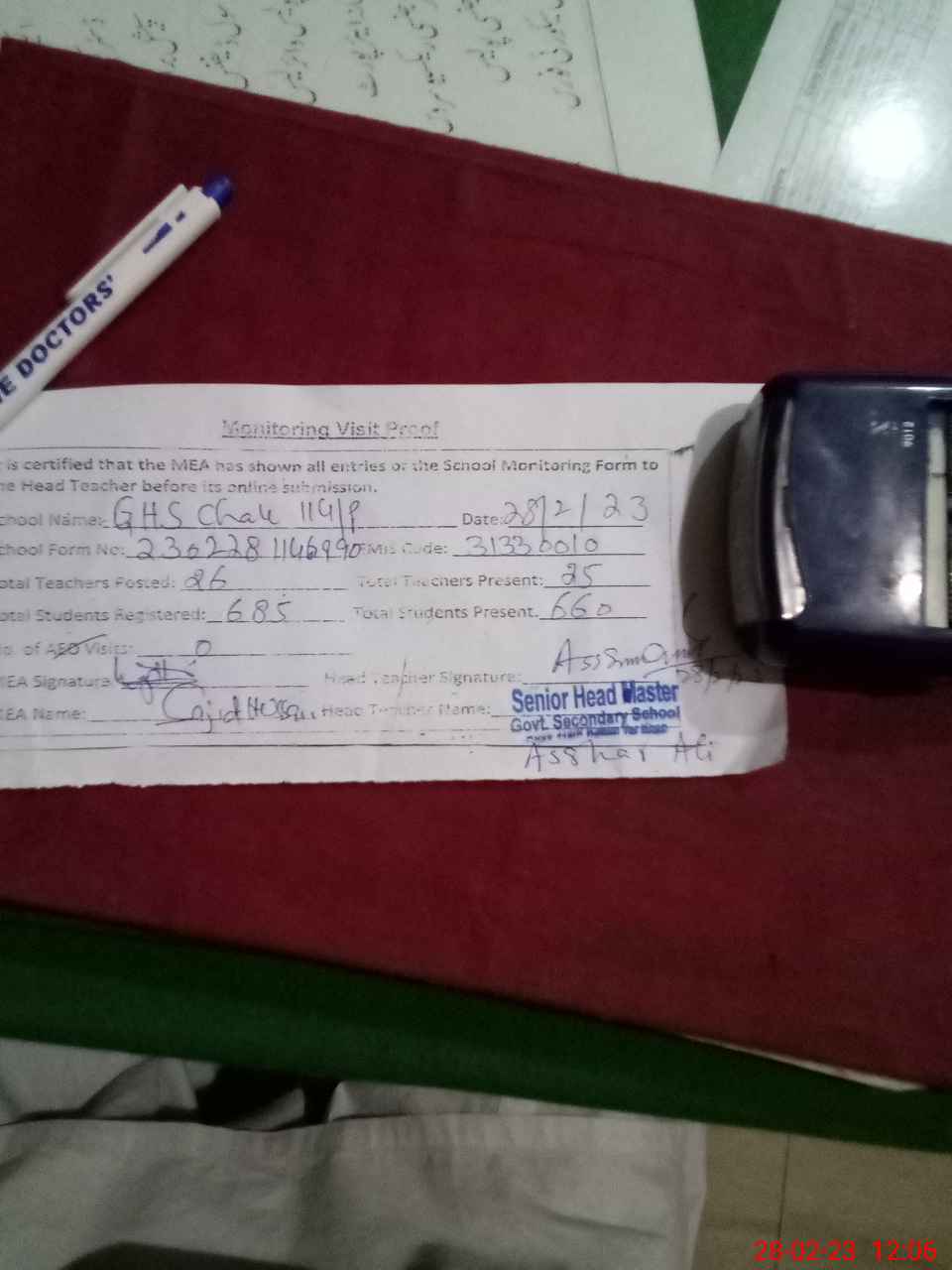 | Attendance Register | Head Teacher | MEA with School | Visit Proof |
