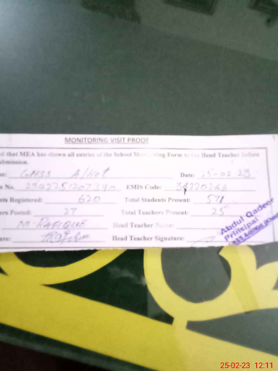 | EMIS Code: 38220266 | Name of School: GHSS ADHI KOT | |||