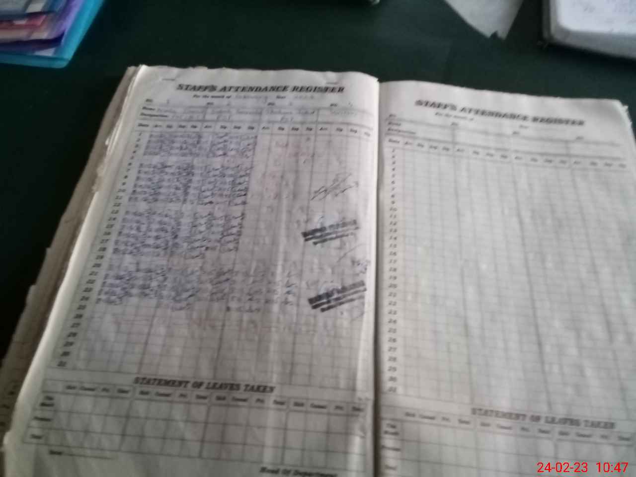 | Leave | Duty | Absent | Maternity | Medical | Ex- Pak |