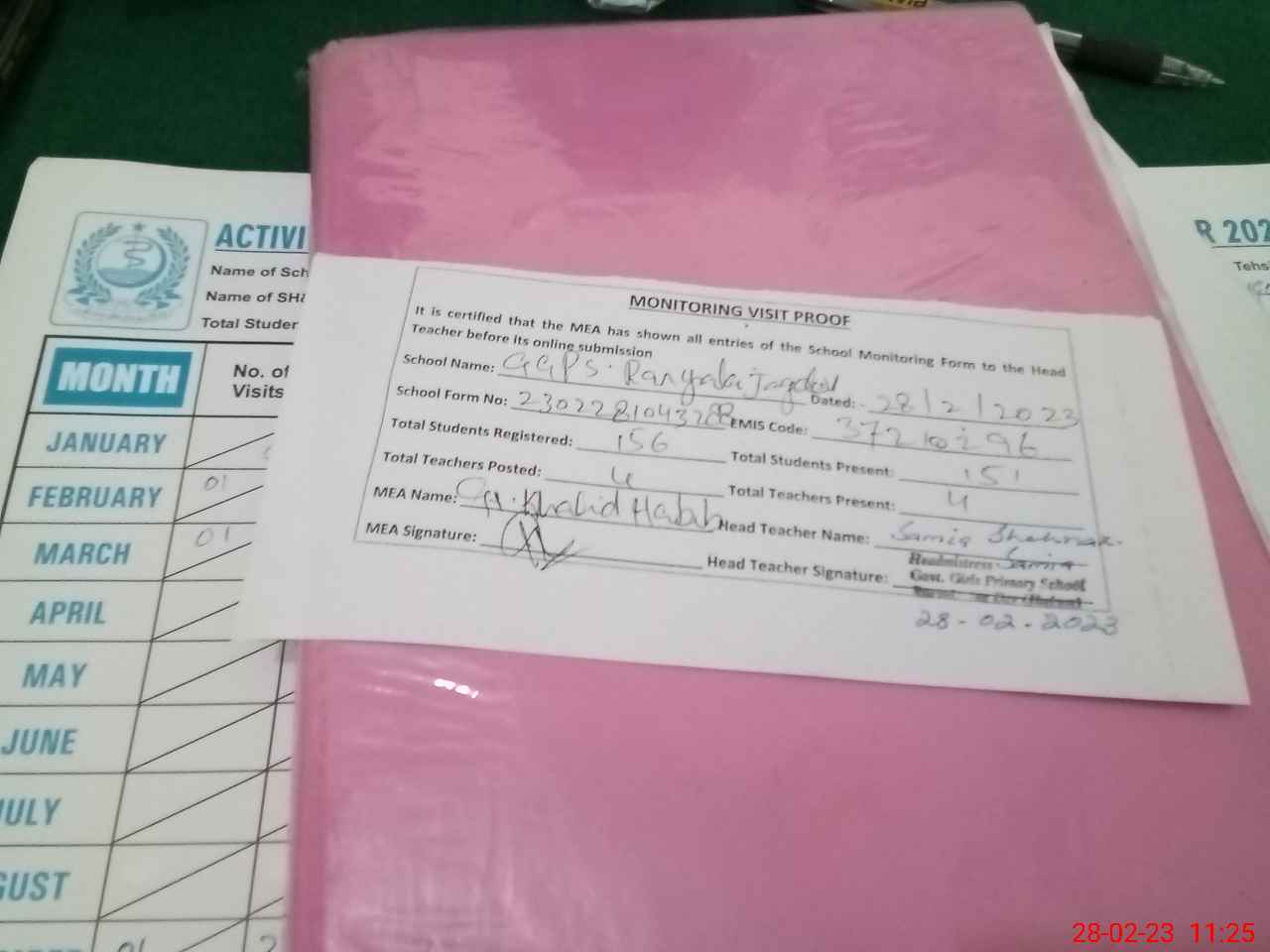 | Attendance Register | Head Teacher | MEA with School | Visit Proof |