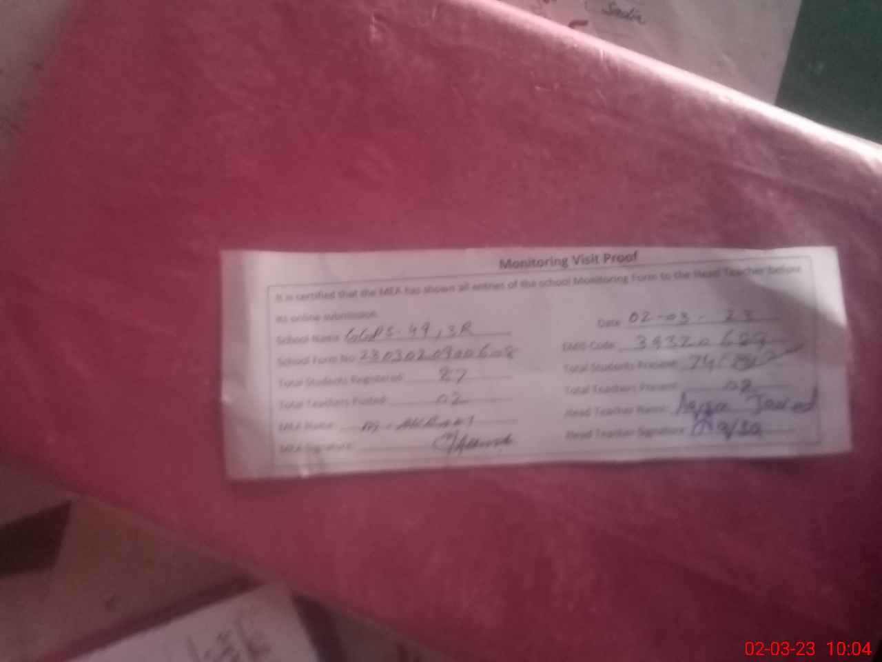 | Certified that this School was Inspected by the Undersigned MEA/DMO Today and the Information Stated Above is as Per Record. | |||||
