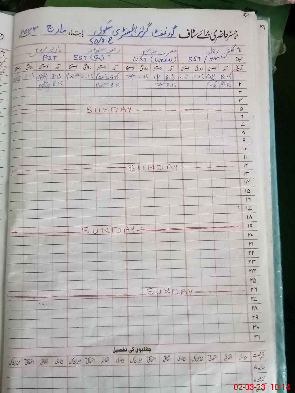| Name: Ra**** Su**** Designation: (School Headmaster's/Headmistress's) E.S.T.(Urdu) Phone/Cell Number: 03**** |