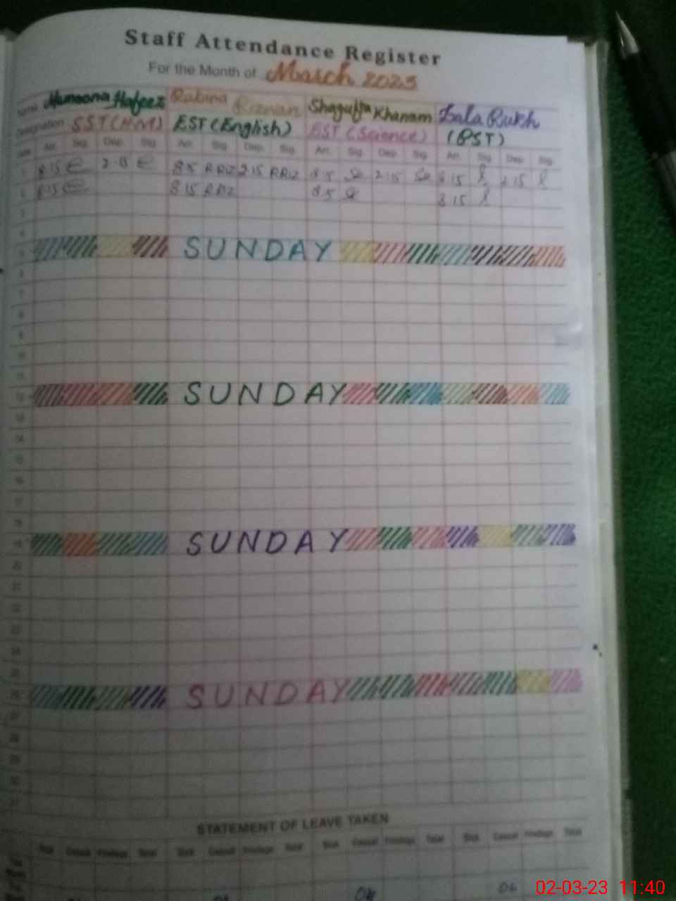 | Leave | Duty | Absent | Maternity | Medical | Ex- Pak |