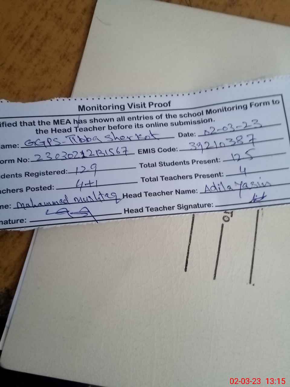 | EMIS Code: 39210387 | Name of School: GGPS TIBBA SHER KOT | |||