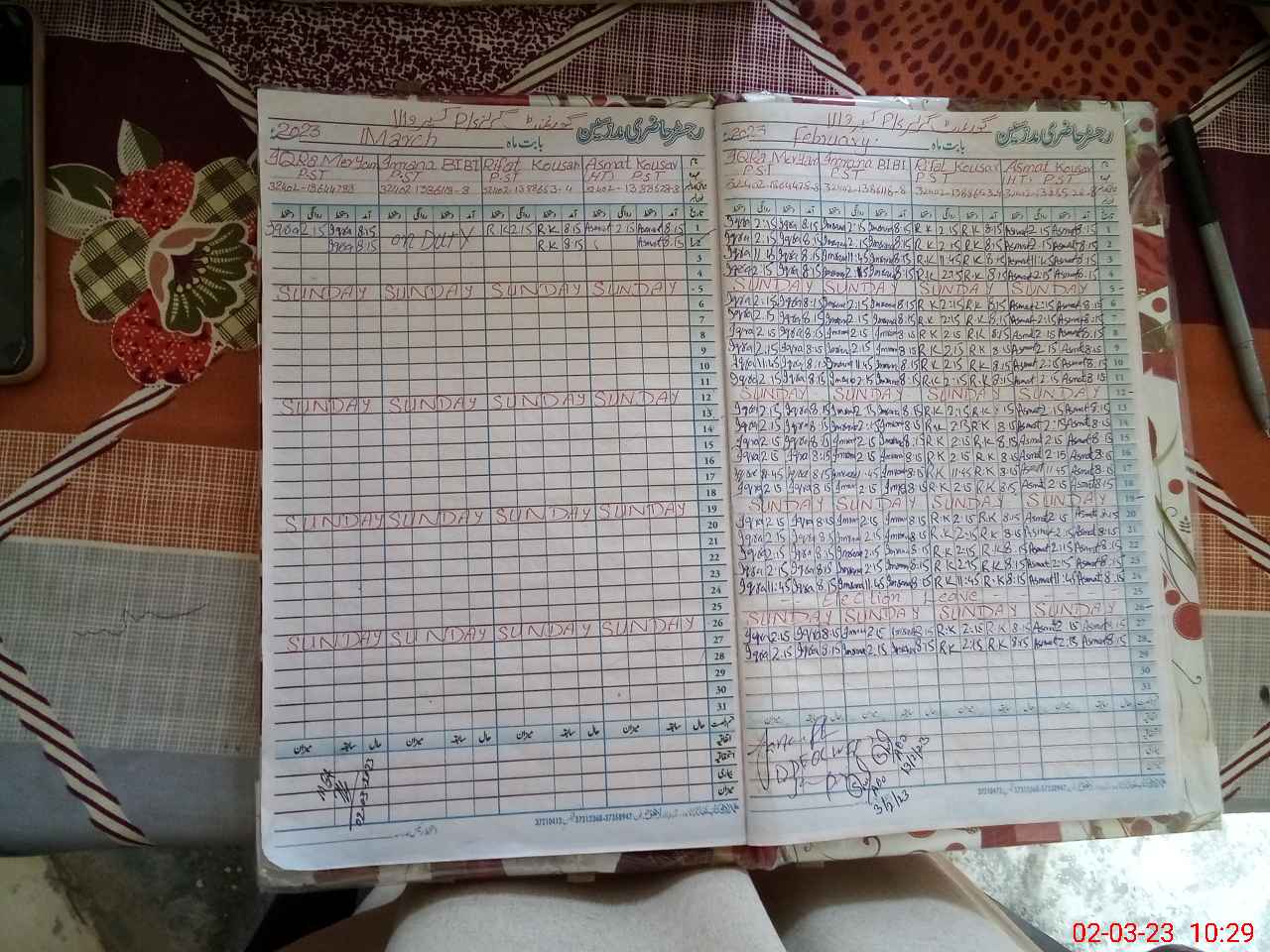 | CNIC | Full Name | Designation | R/C | Absence During Last Calender Month |