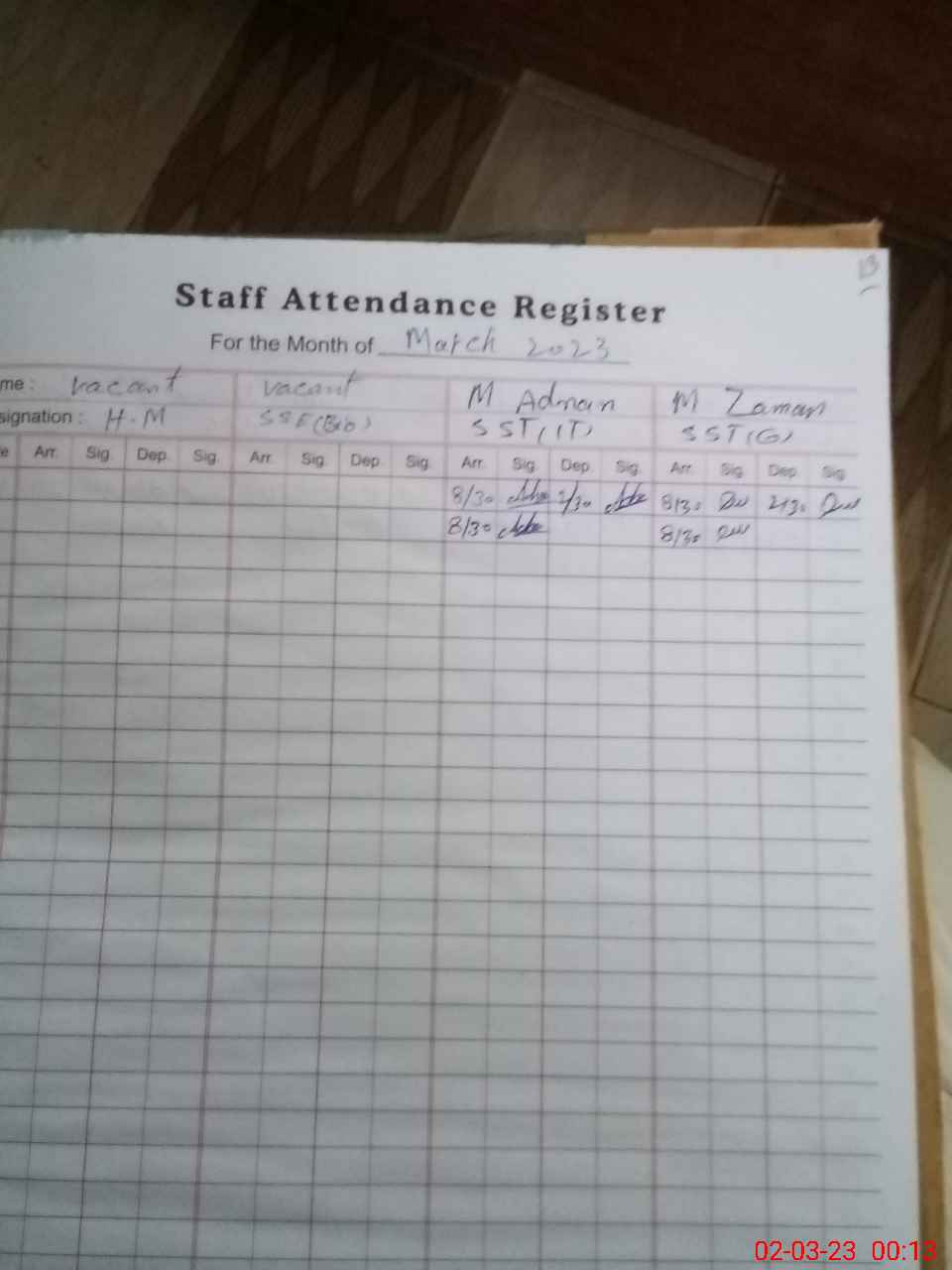 | Name: KA**** AM**** Designation: (School Headmaster's/Headmistress's) SST Phone/Cell Number: 03**** |