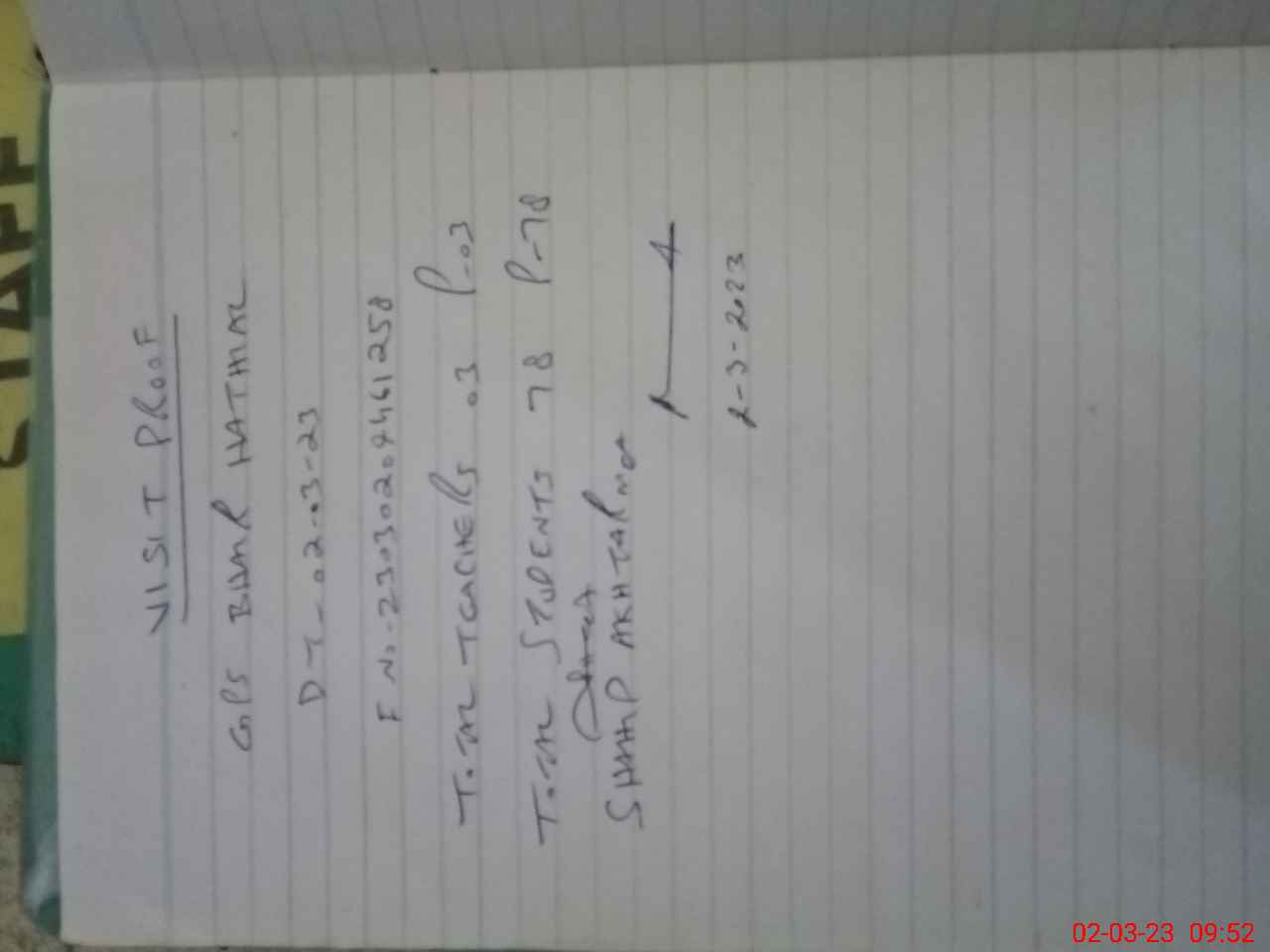| Attendance Register | Head Teacher | MEA with School | Visit Proof |