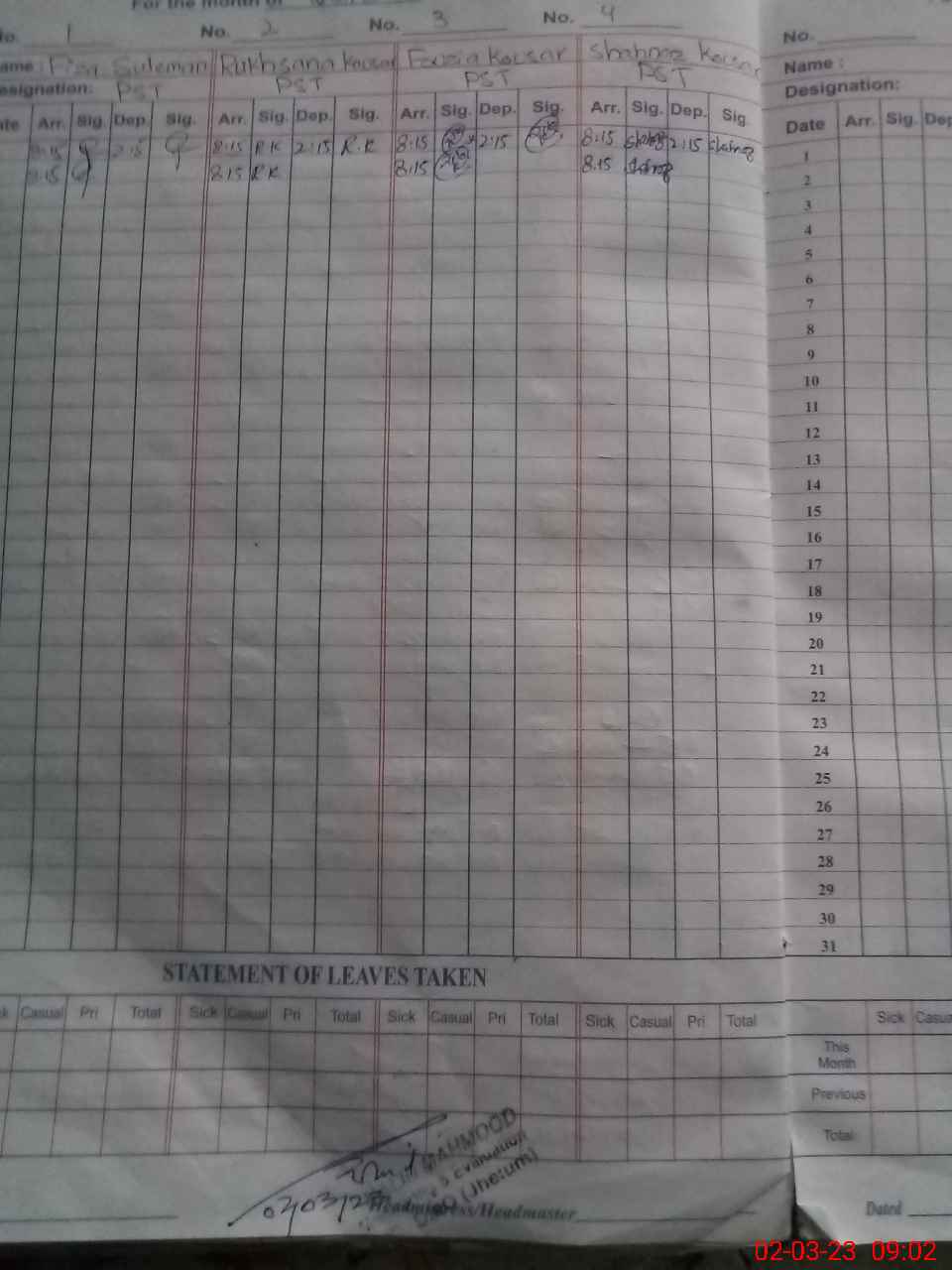 | Name: Sh**** Ko**** Designation: (School Headmaster's/Headmistress's) PST Phone/Cell Number: 03**** |