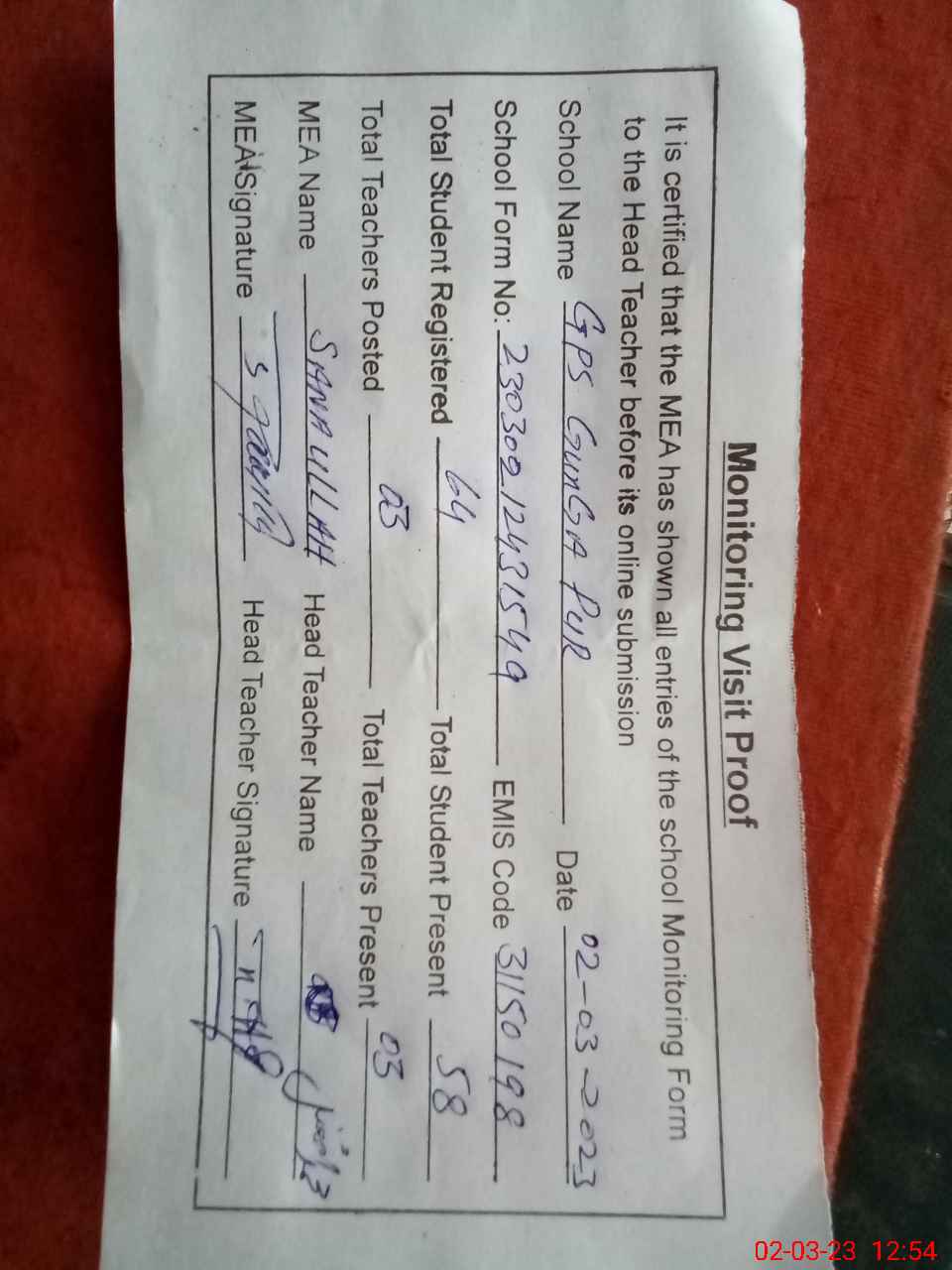 | EMIS Code: 31150198 | Name of School: GPS GANGA PUR | |||