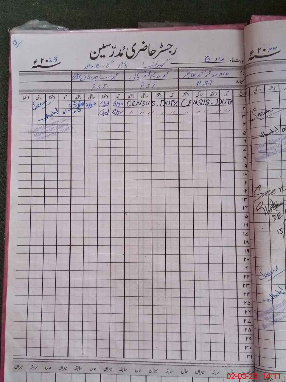| Name: HA**** MU**** AH**** Designation: (School Headmaster's/Headmistress's) PST Phone/Cell Number: 03**** |