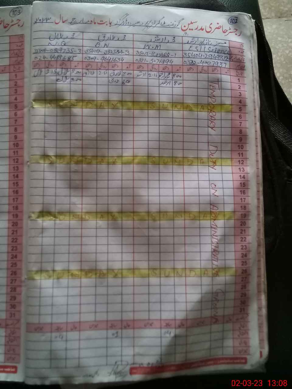 | CNIC | Full Name | Designation | R/C | Absence During Last Calender Month |