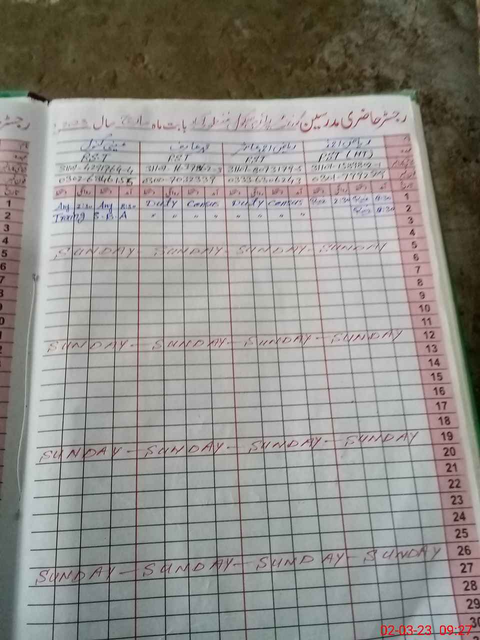 | Name: RI**** AH**** Designation: (School Headmaster's/Headmistress's) PST Phone/Cell Number: 03**** |