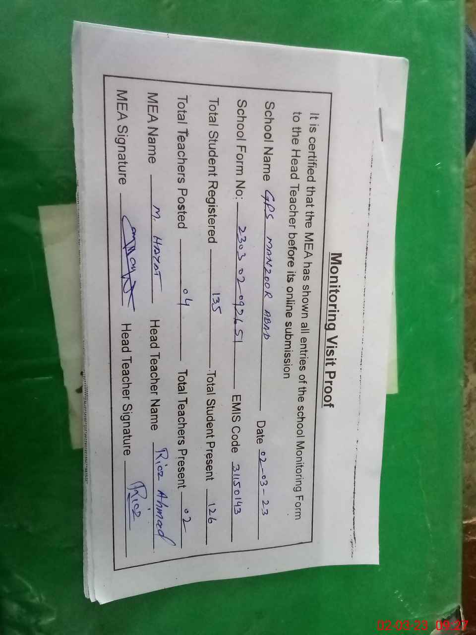 | EMIS Code: 31110143 | Name of School: GPS MANZOOR ABAD | |||