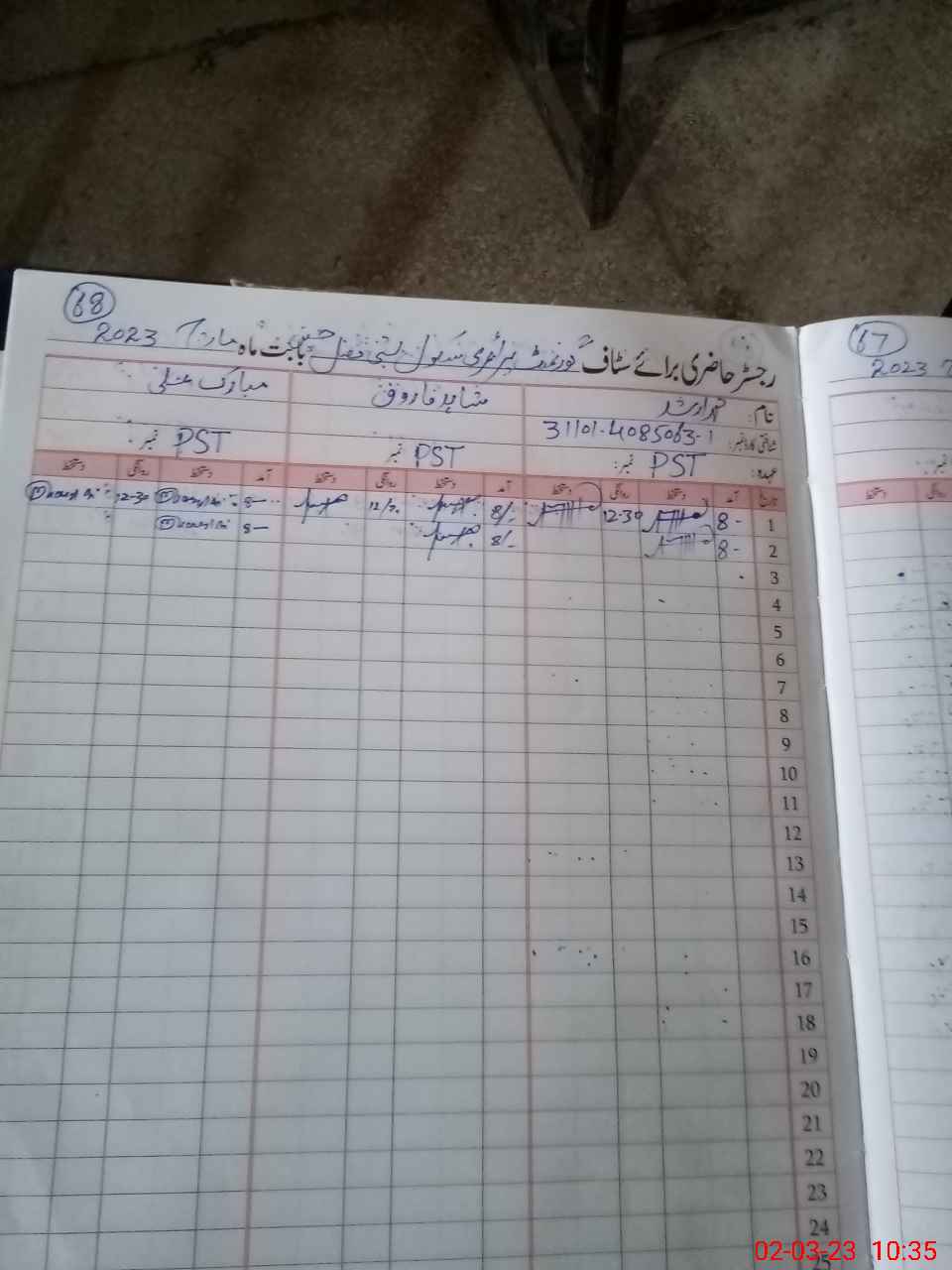 | Name: SH**** FA**** Designation: (School Headmaster's/Headmistress's) PST Phone/Cell Number: 03**** |