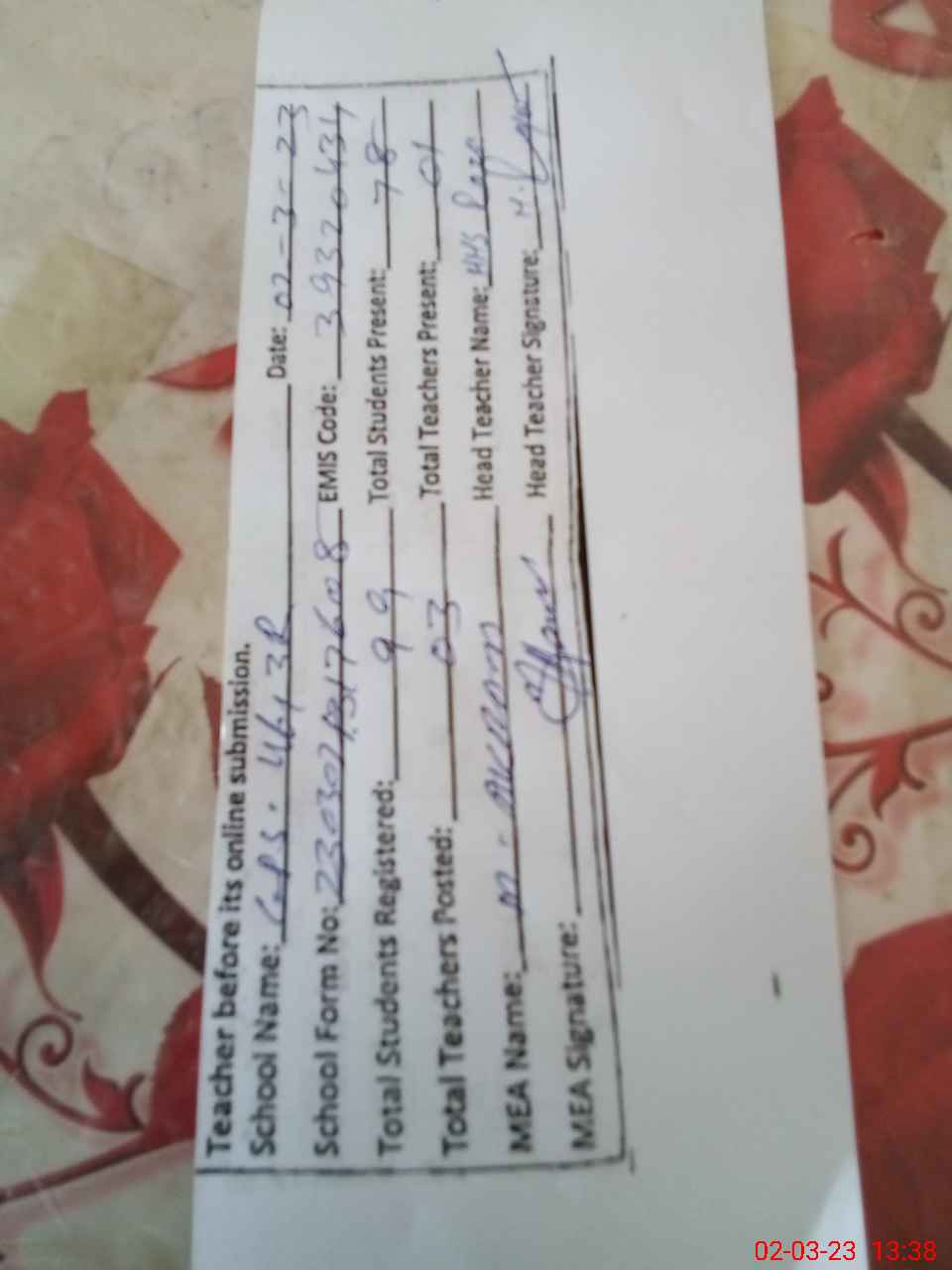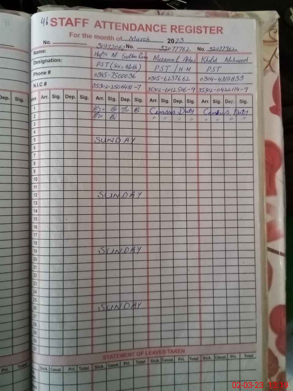 | Name: Mu**** Ab**** Designation: (School Headmaster's/Headmistress's) PST Phone/Cell Number: 03**** |