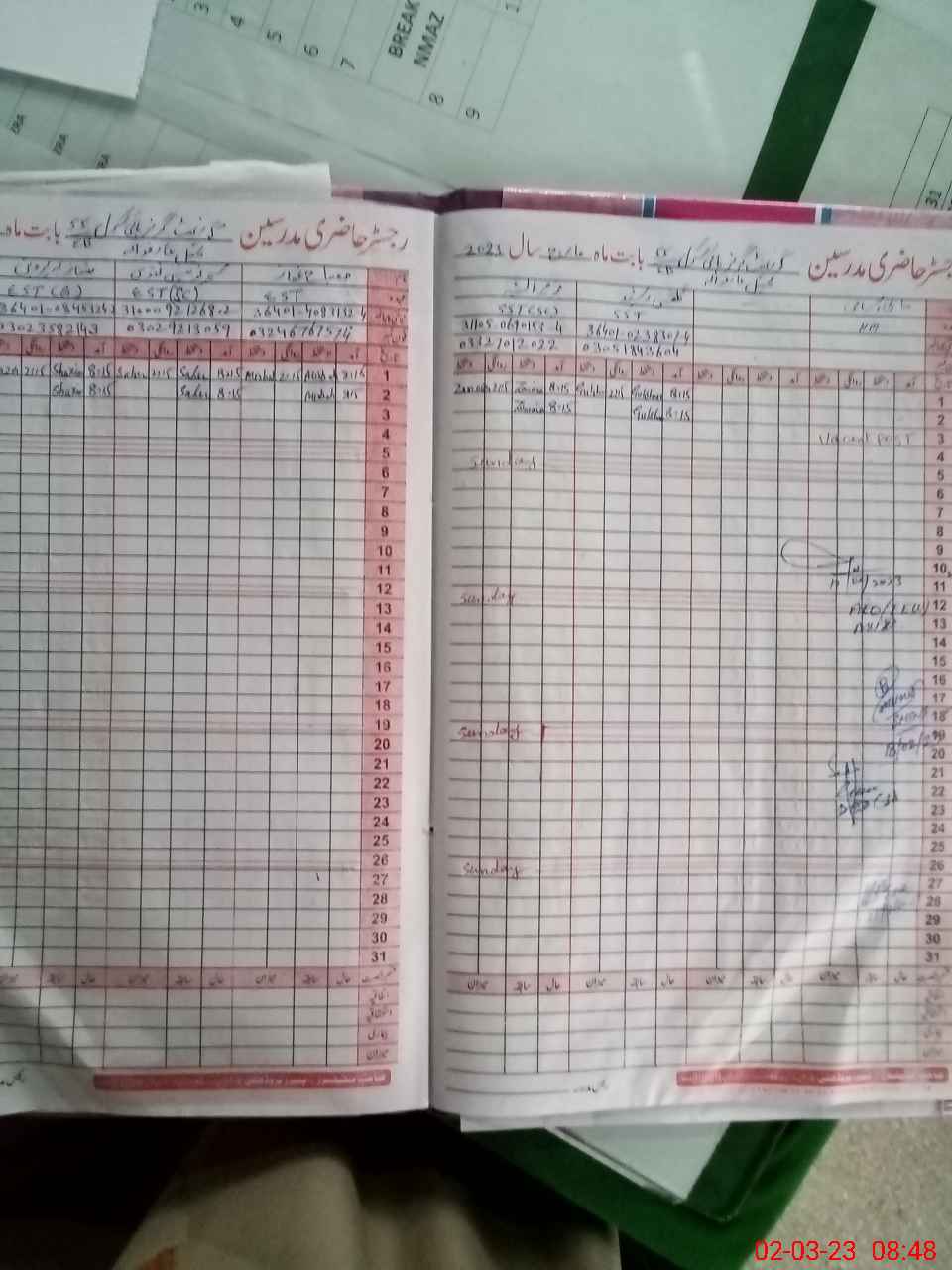 | Name: ZU**** BA**** Designation: (School Headmaster's/Headmistress's) S.S.T.(Sc.) Phone/Cell Number: 03**** |