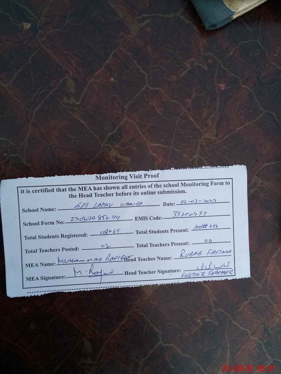| EMIS Code: 39210497 | Name of School: GPS LADHU WANGA | |||