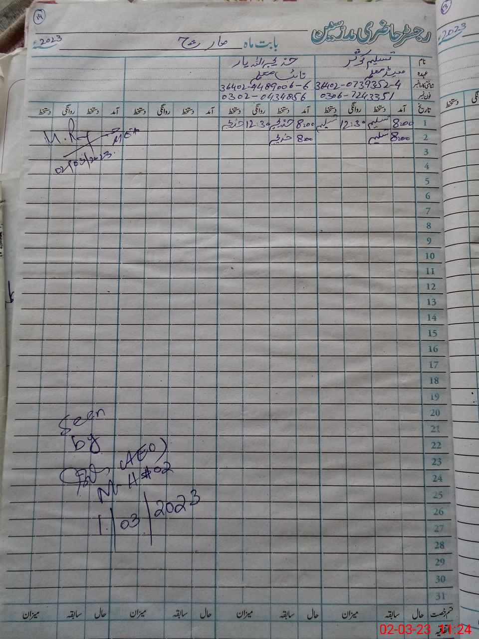| CNIC | Full Name | Designation | R/C | Absence During Last Calender Month |
