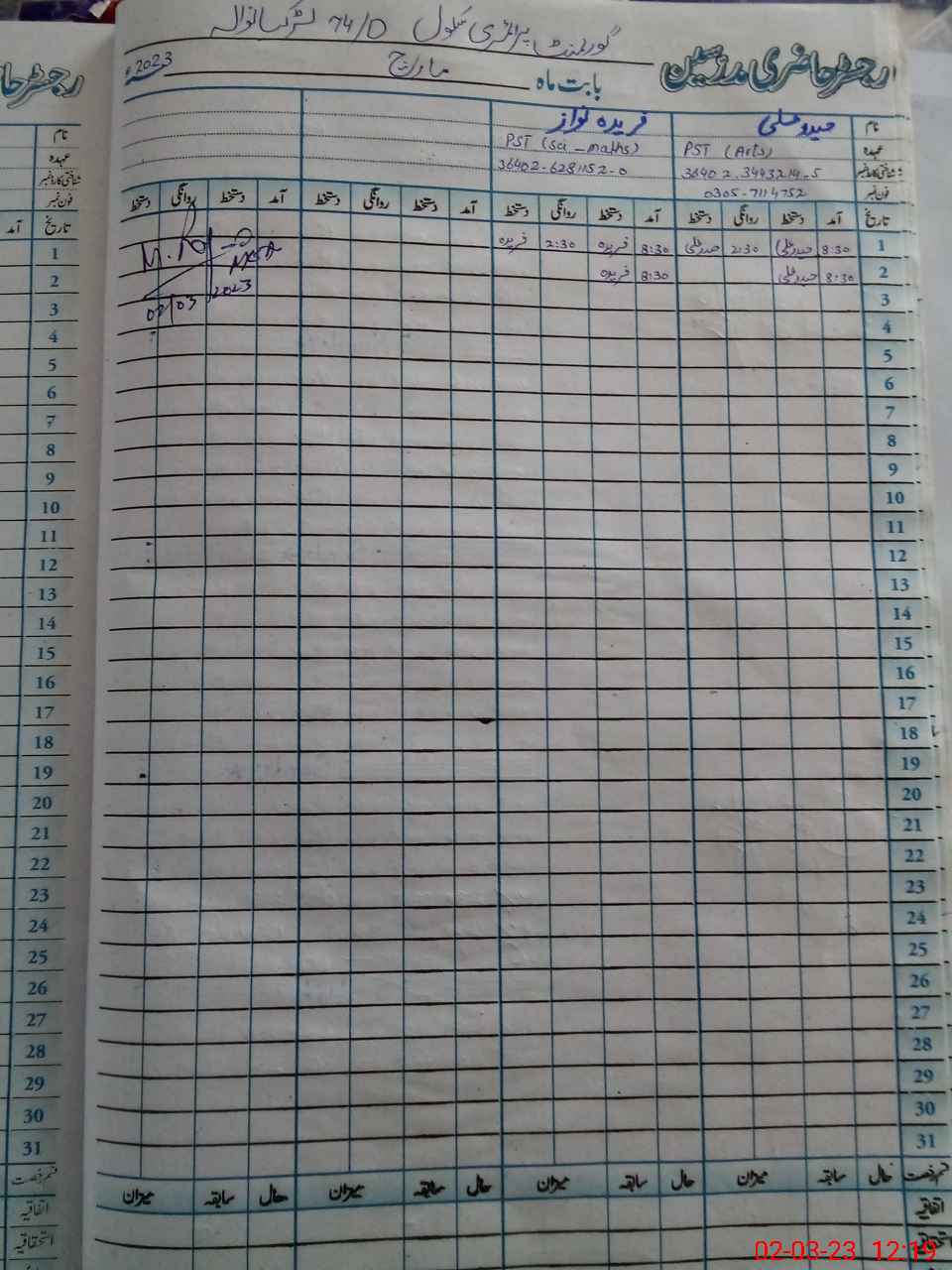 | Name: HA**** AL**** Designation: (School Headmaster's/Headmistress's) PST Phone/Cell Number: 03**** |