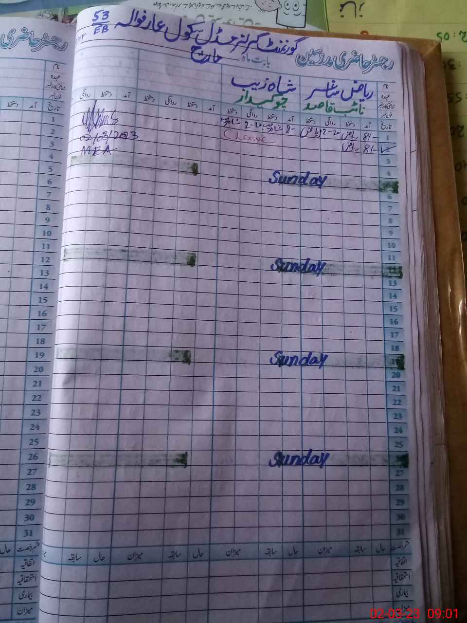 | Attendance Register | Head Teacher | MEA with School | Visit Proof |