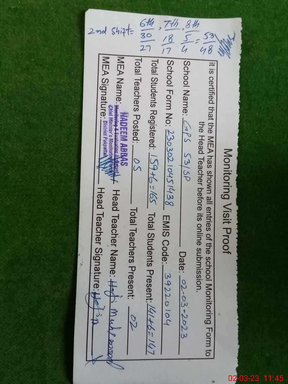 | EMIS Code: 39220104 | Name of School: GPS 53 SP | |||