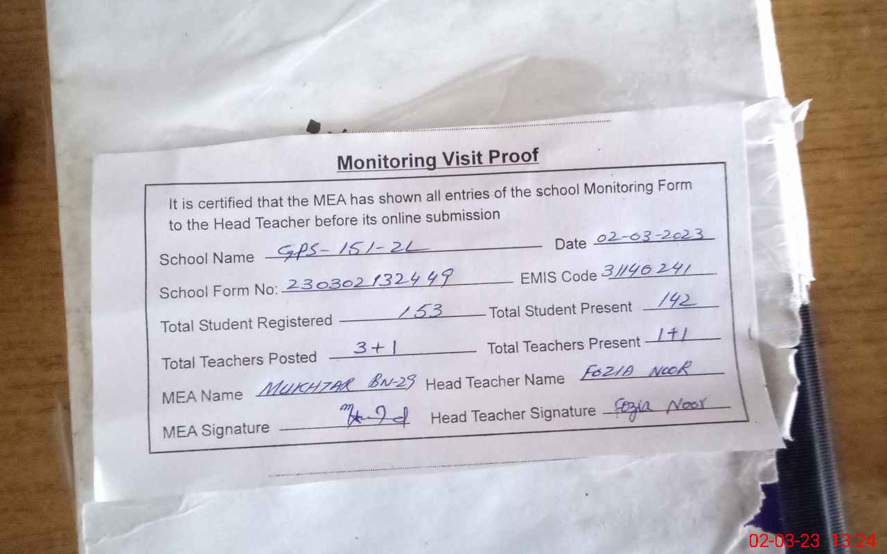| EMIS Code: 31140241 | Name of School: GPS CHAK NO 151/2-L | |||