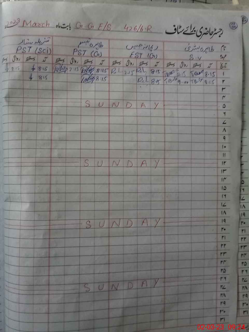 | CNIC | Full Name | Designation | R/C | Absence During Last Calender Month |