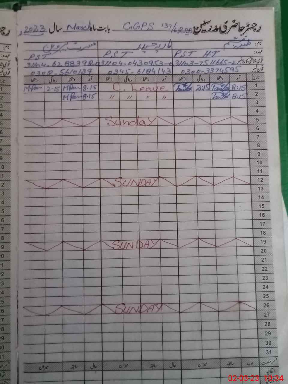 | 31**** | Ma**** Ha**** | PST | Regular | 2 | 0 | 0 | 0 | 0 | 0 | 0 | 0 | 2 | Casual |