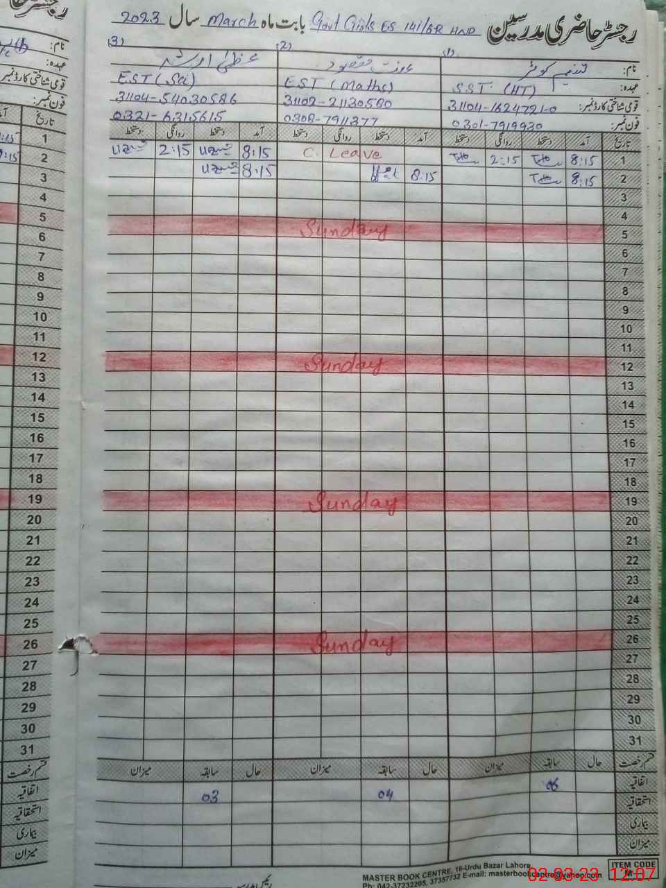 | Name: TA**** KO**** Designation: (School Headmaster's/Headmistress's) S.S T (GEN) Phone/Cell Number: 03**** |