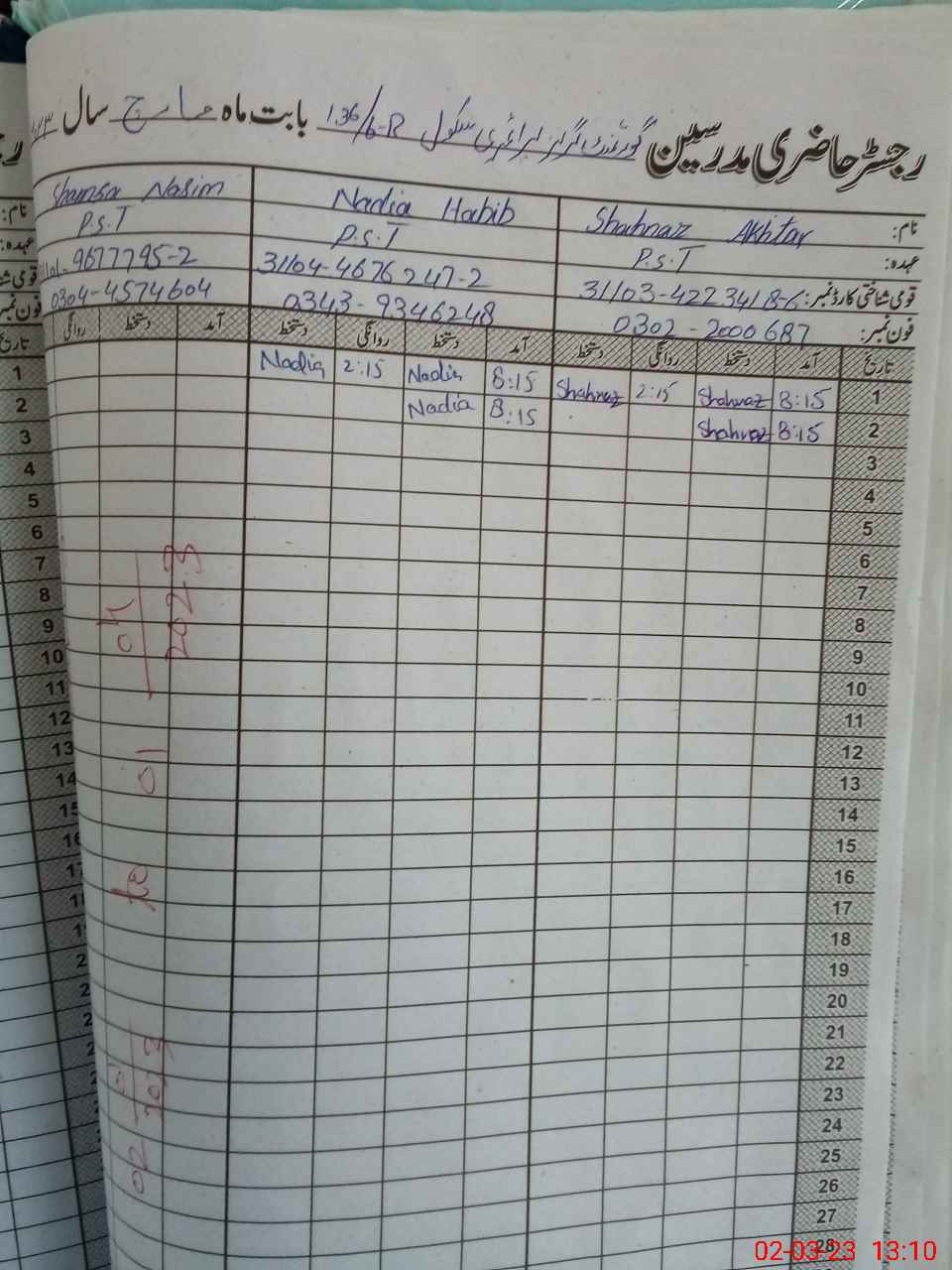 | Name: Sh**** Ak**** Designation: (School Headmaster's/Headmistress's) PST Phone/Cell Number: 03**** |