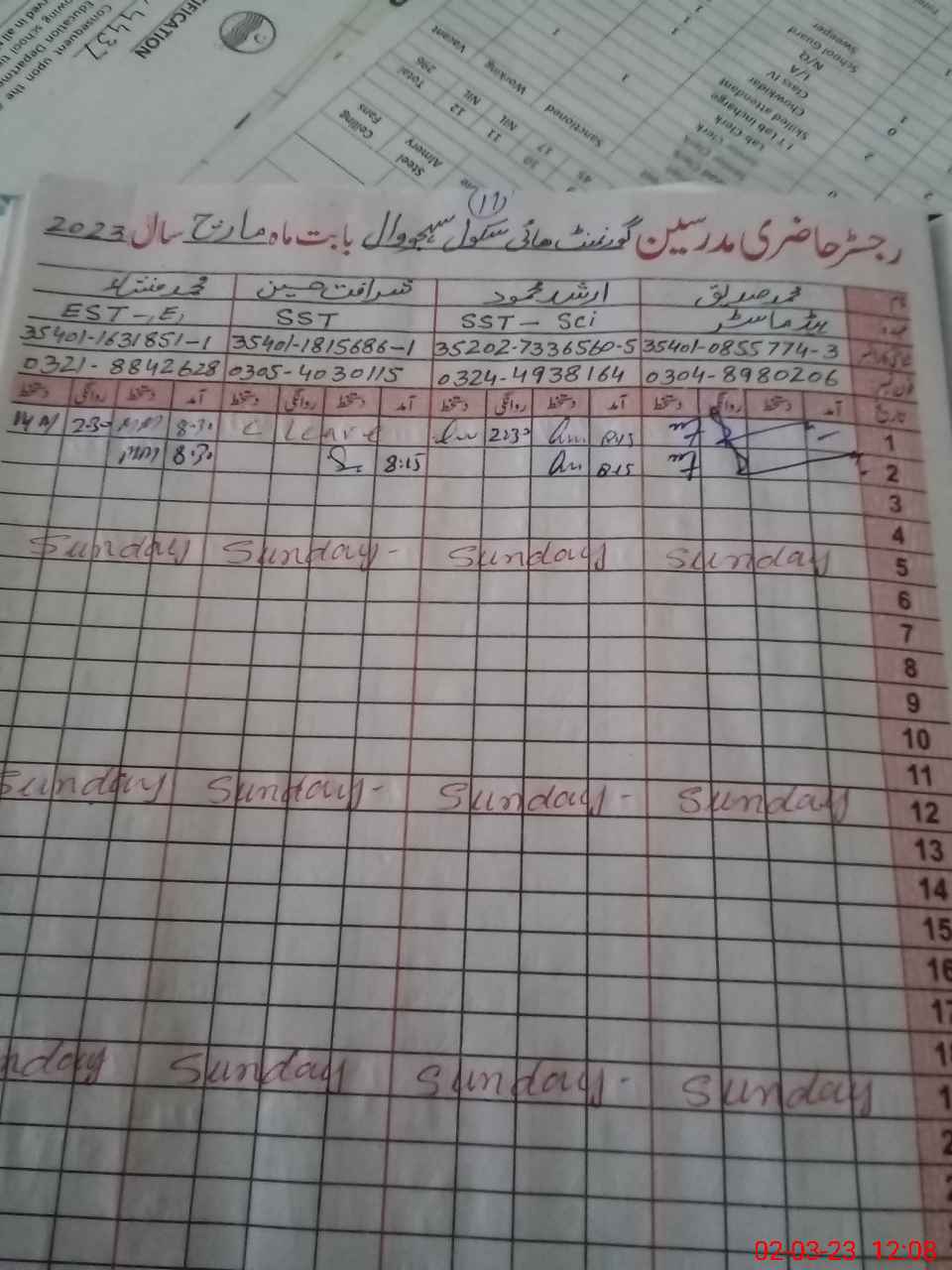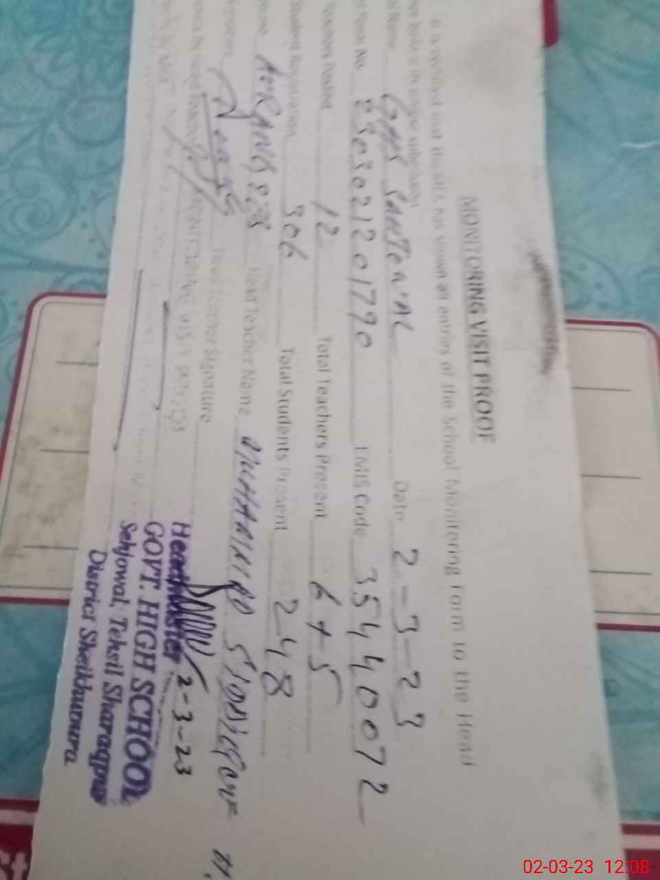 | Name: SH**** HU**** Designation: (School Headmaster's/Headmistress's) SST Phone/Cell Number: 03**** |